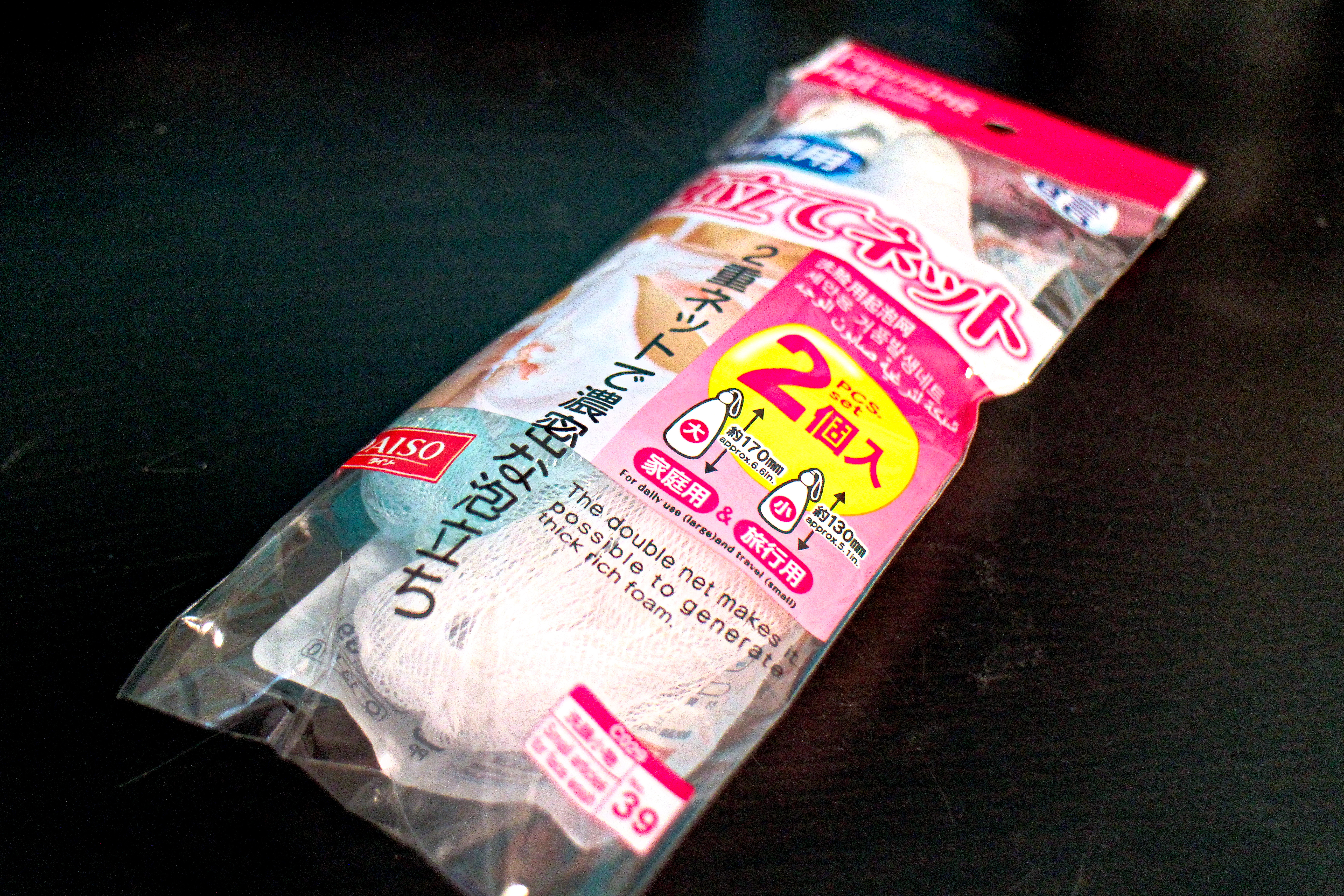 I went to a local Japanese market that carries all kinds of household goods like containers and office supplies and dishes, hoping to find a cute notebook or two to take home. After browsing the stationary aisle, I didn’t really find anything suitable and stumbled over to the beauty aisle. Instead I found a foaming net! I’ve been hearing good things about foaming nets and have been meaning to try one out. I’ve heard that it’s bad to directly apply face wash to the skin and that you should foam it up first. However, it’s difficult to adequately make foam in your own hands, so you can use a foaming net to create lots of thick foam instead.