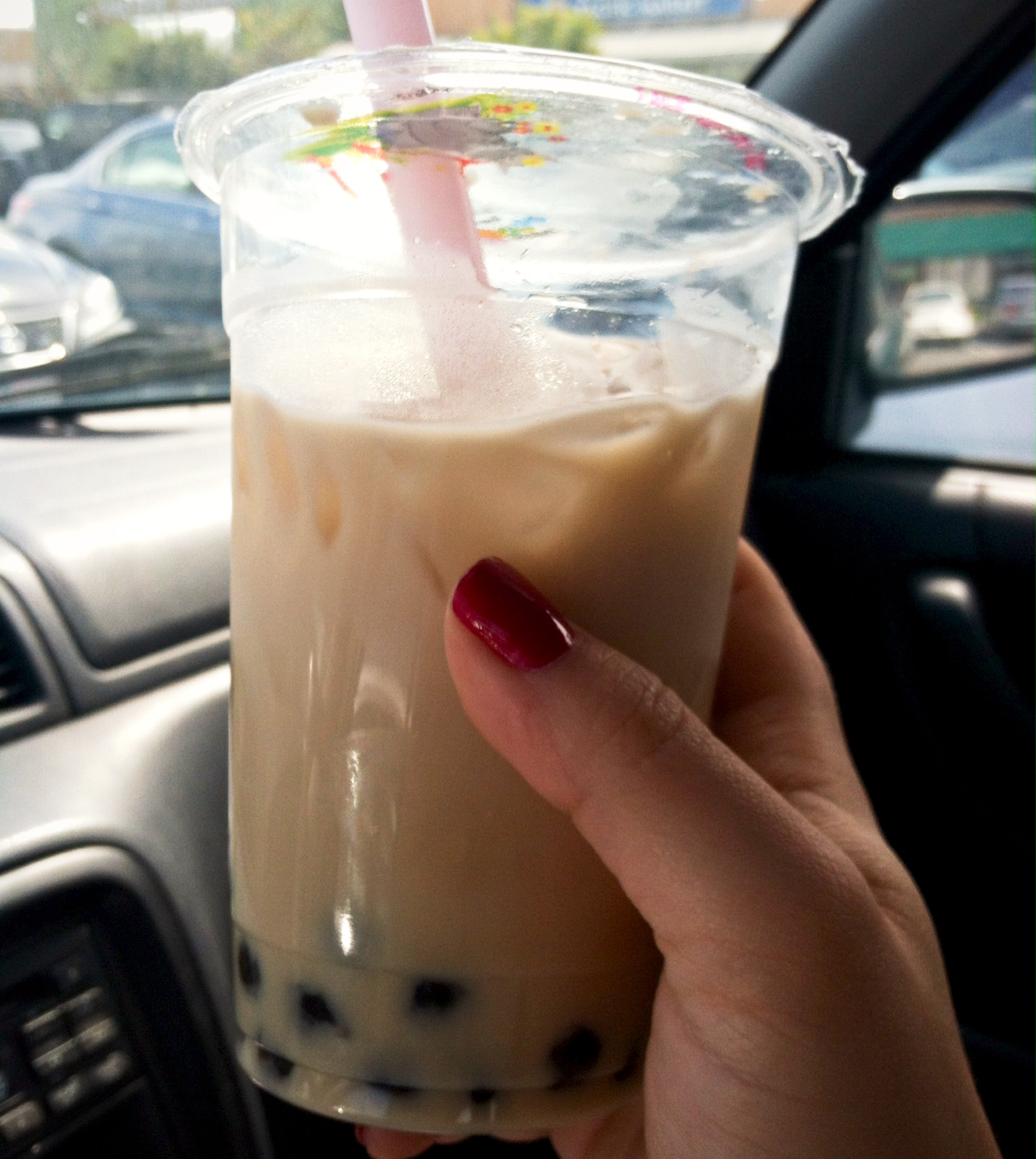 After striking out at the first store, I decided to try my local Sanrio. But I got sidetracked along the way (of course). I decided to stop at a Vietnamese boba and pho restaurant to get something to drink. I ordered an almond milk tea with boba: