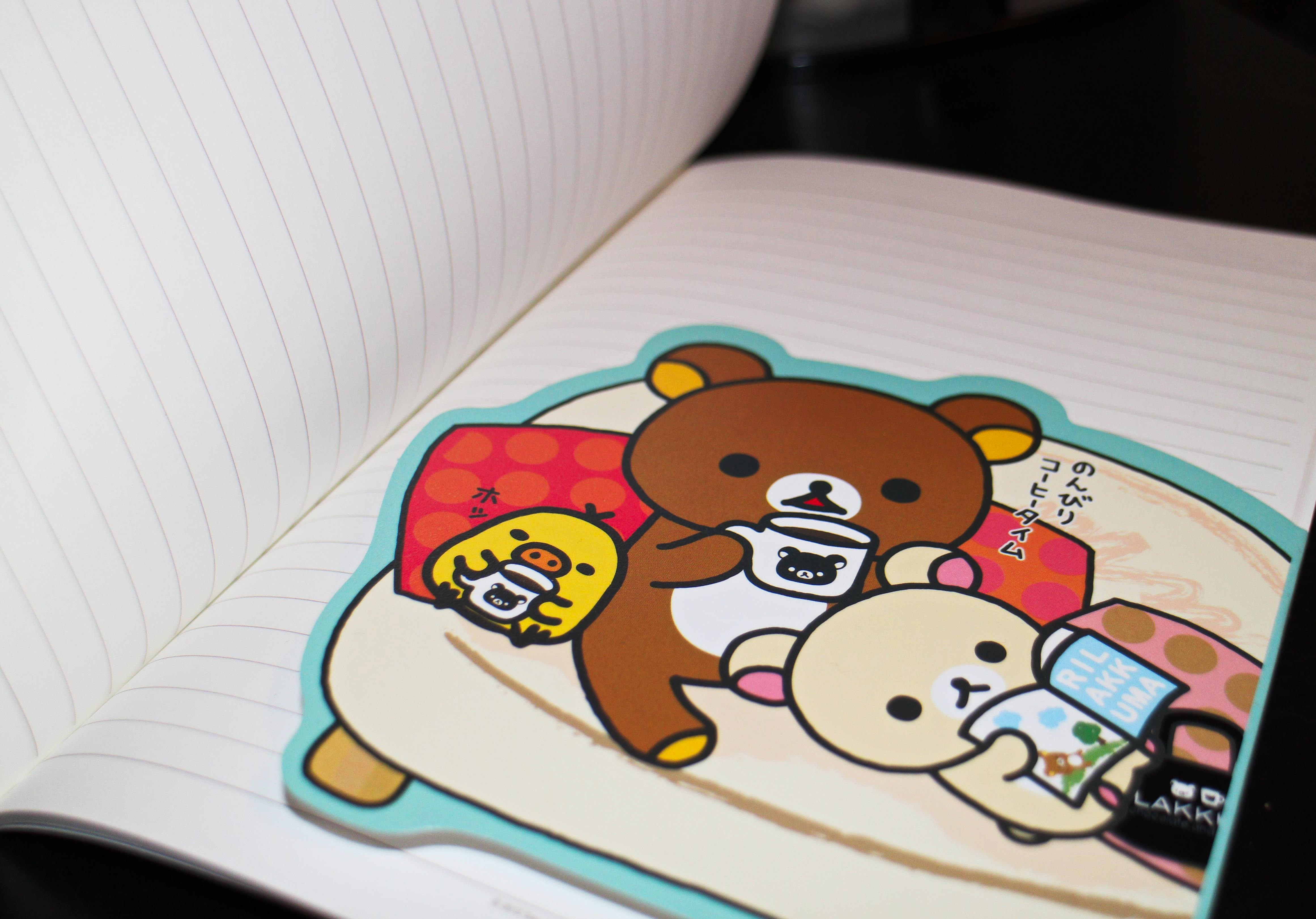 The first two notebooks (animal pattern and astronaut Rilakkuma) have lots of pages and very clean lines. I can’t wait to write in them! The third notebook (coffee Rilakkuma) has less pages, but it has a bookmark flap that you can use to mark your page. Underneath the flap, the characters have their eyes closed like they’re napping. So cute!