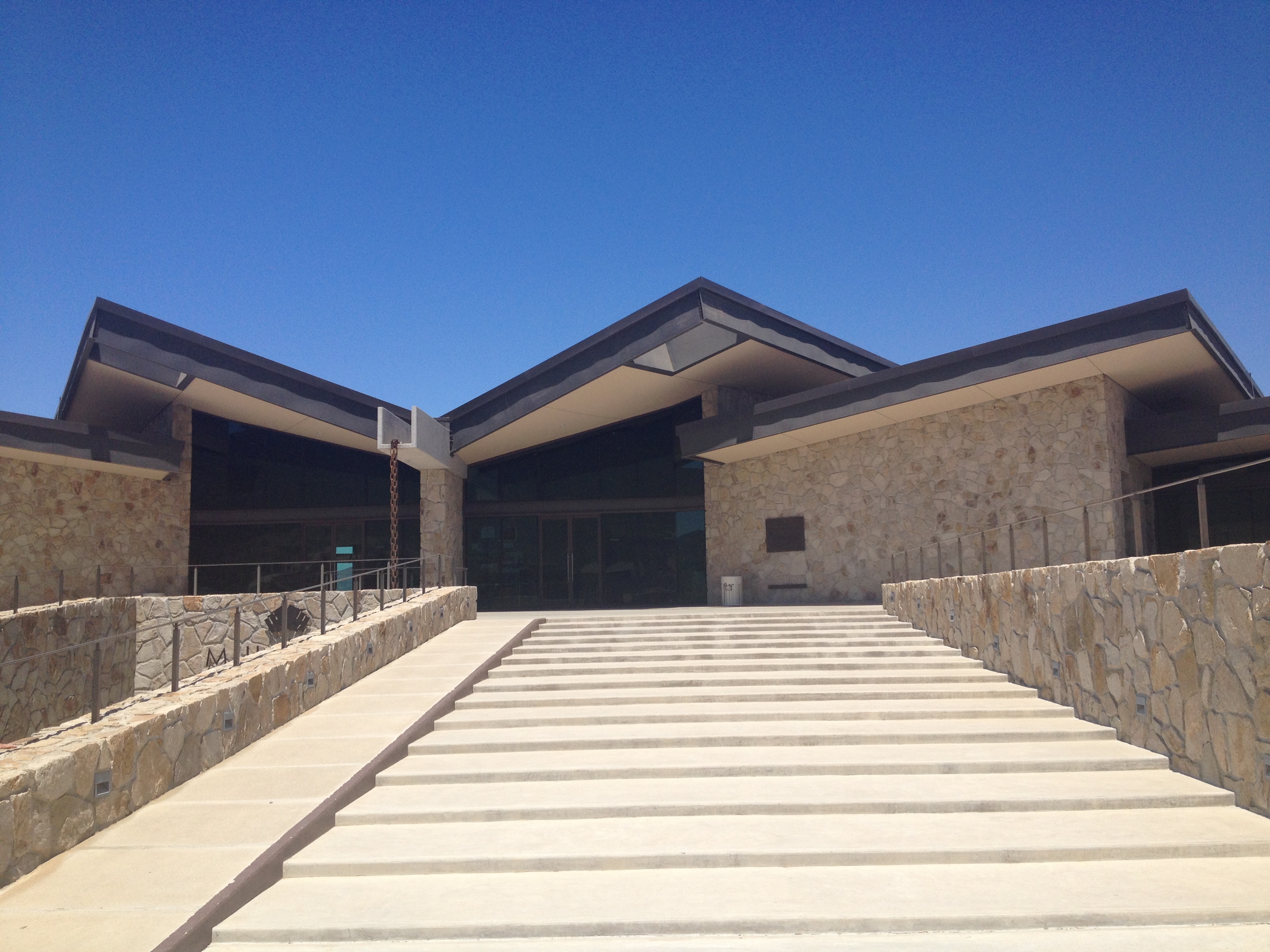 After breakfast, we drove out to a wine museum. Surrounding Ensenada is a vast wine country, and there are tons of vineyards you can tour and visit. The museum had an entrance fee, so we decided to skip it, but they had a wide terrace with a great view that was free to access.