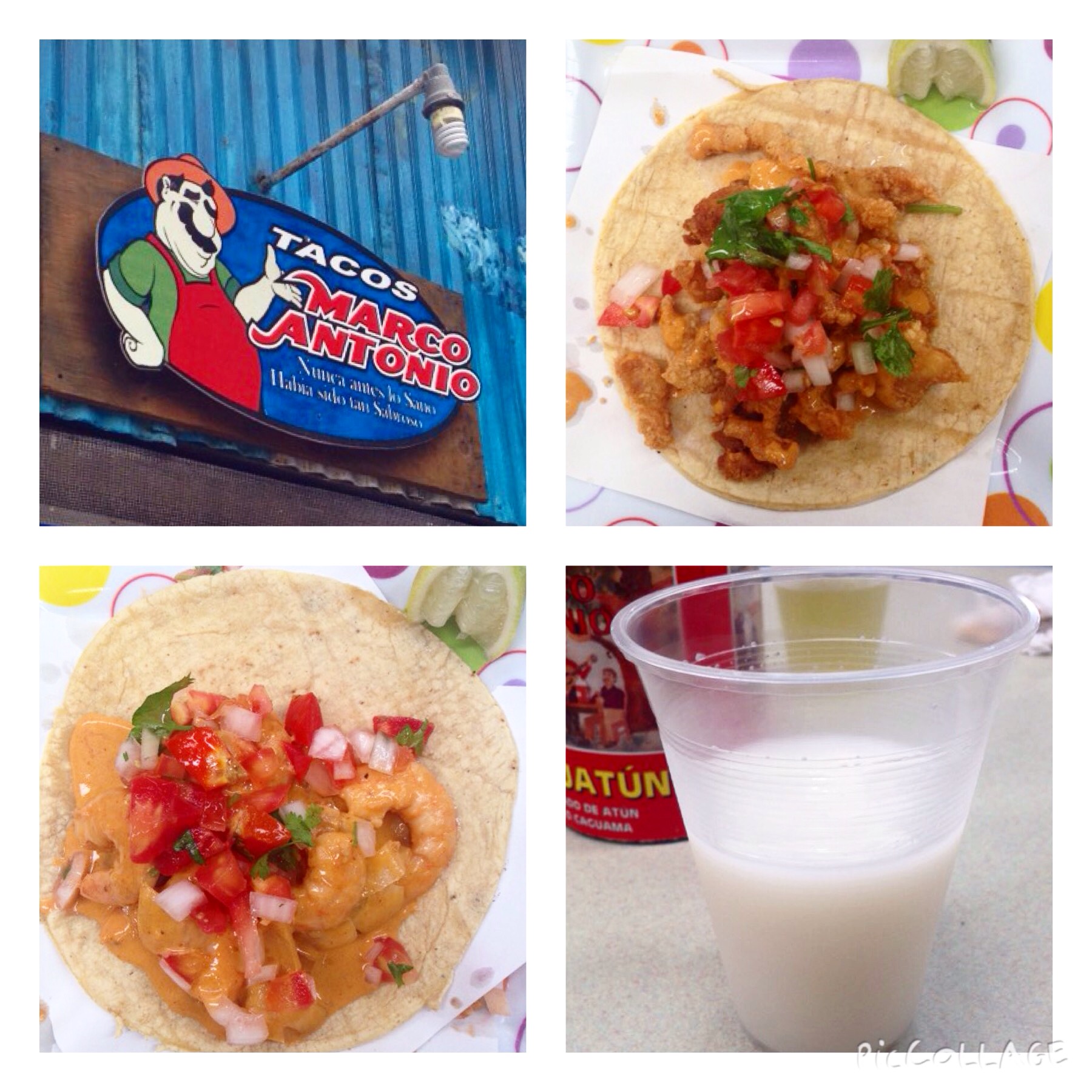 The next day, we woke up early and my dad’s friend from the night before picked us up to take us to breakfast at a seafood taco restaurant. The restaurant was actually an old fish cannery that was converted into a restaurant, and some of the old canning machinery was on display inside. The place had a very rugged but fresh and airy feeling to it. I ordered fried fish, chipotle shrimp, and horchata, which is a sweet rice milk drink.