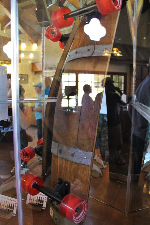 After checking out of the hotel, we drove out to wine country one last time. We stopped at a vineyard that my dad knew of and tasted a few varieties of wine. The entire property was surrounded by olive trees, and the facade of the main tasting room was embellished with colorful flowers and vines. In addition to wine and souvenirs, this winery also sold interesting skateboards made from the wood of wine barrels!