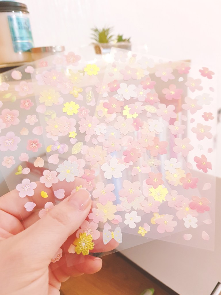 The cover is originally just plain gray paper with a rose gold foil print, but I decorated it with floral stickers I picked up at Hottracks here in Seoul.