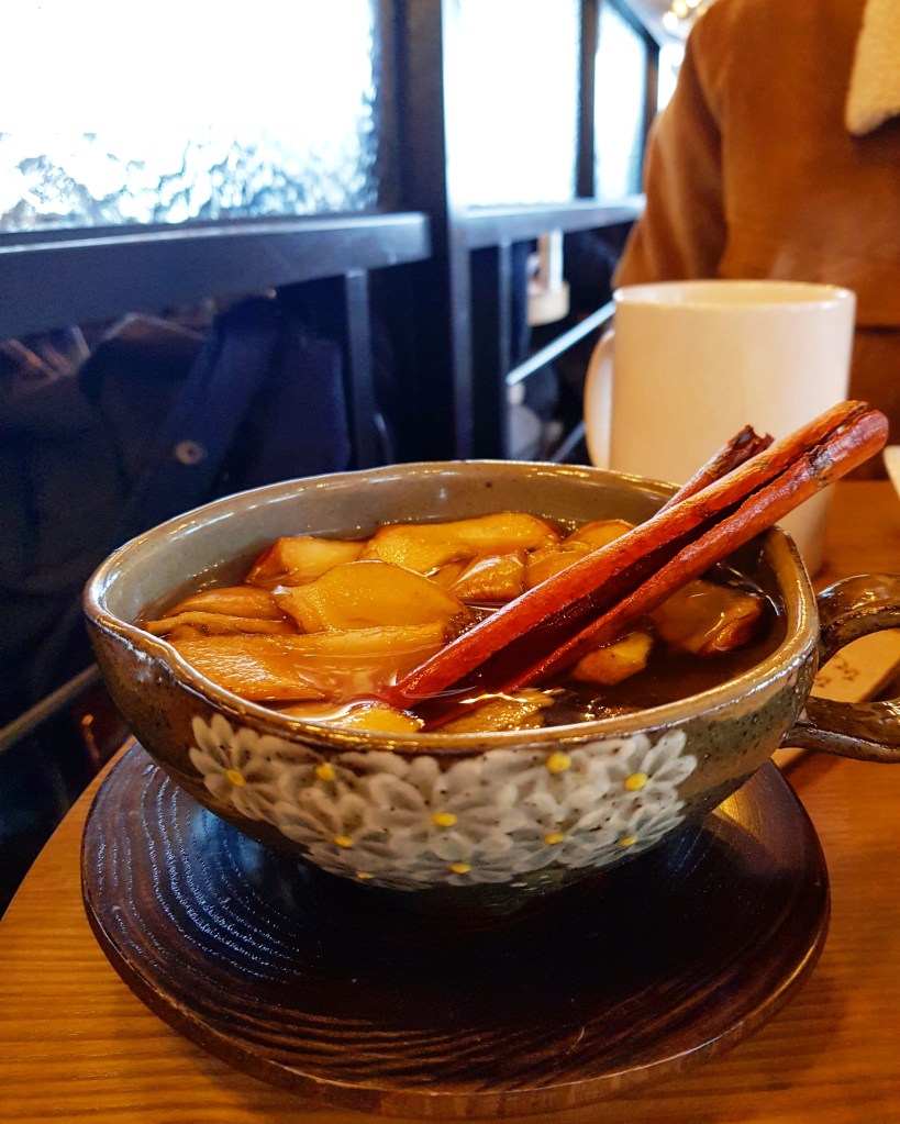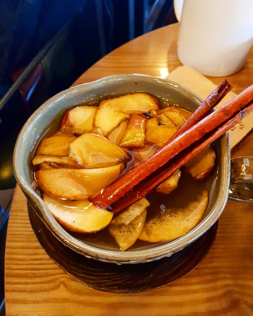It was a rather cold day, so I also ordered a piping hot mug of apple cinnamon tea. I was expecting an average sized mug with maybe a tea bag, or some apple jam at the bottom, but instead I received this giant clay mug filled with real apple slices and not one, but TWO fresh cinnamon sticks! Needless to say, I finished every last drop and even nibbled on some of the apple pieces.