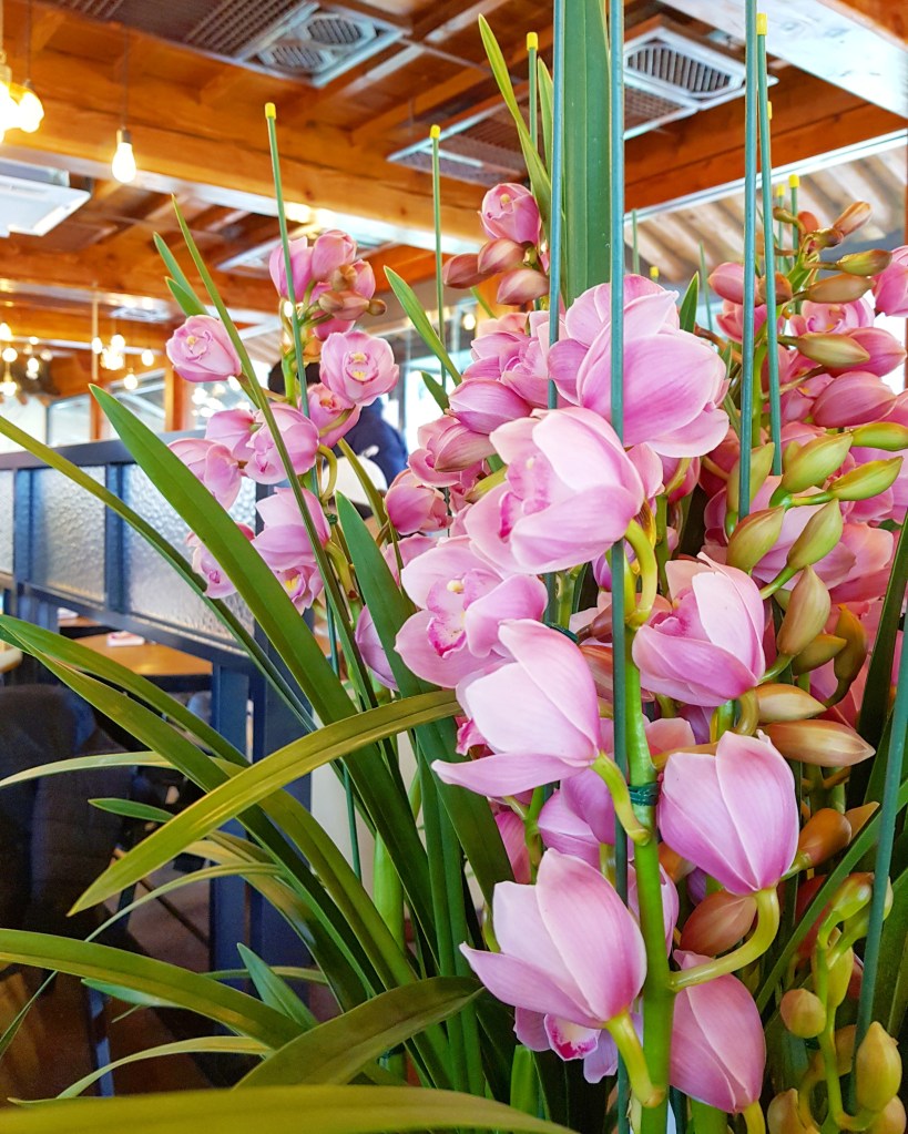 Not only were the food and drinks amazing, but the ambiance of the whole place was cozy and gave off a very traditional Korean vibe. They had beautiful fresh flowers placed throughout, a warm wood interior, and glowing atmospheric lighting all around.