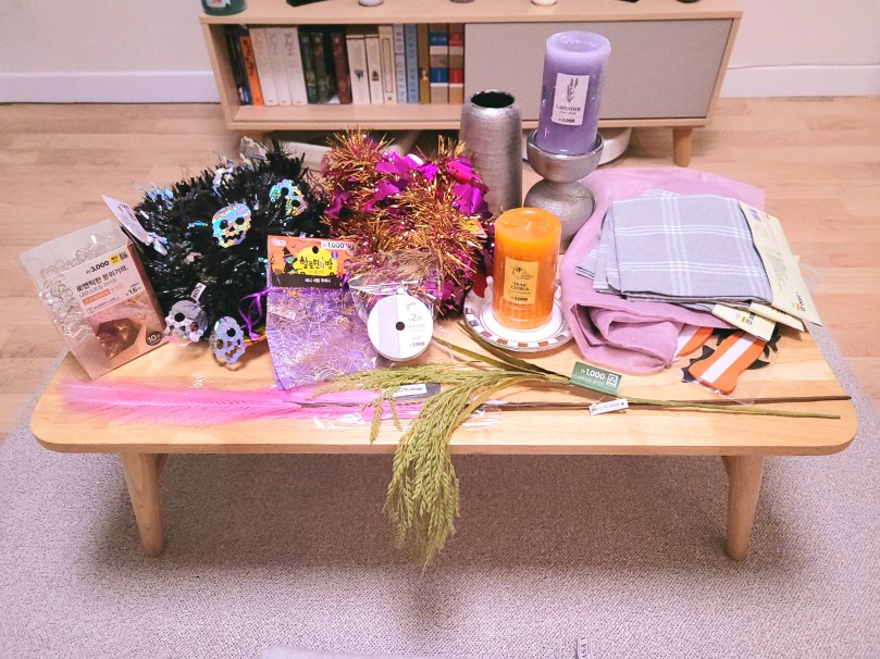 Finally, the Halloween season is upon us! While Halloween is not quite as big a holiday in South Korea as it is in the United States, it is slowly becoming more known and more popular among the younger generation. Many children, especially those who attend private English academies (영어 학원), have had some exposure to the concept of Halloween, so it’s now quite easy to find seasonal decorations and food items at places like Daiso and Starbucks. I’m personally really impressed with the Halloween festivities put on at Everland and Lotte World, two of South Korea’s popular theme parks. I always try to make it a point to visit Everland at least once during their Halloween event period, but since that might not happen this year (pandemic), I wanted to bring the spirit of Halloween home! I already had a sizeable stash of Halloween decorations from my years of teaching English, but I decided to venture out to my nearest Daiso to see what they had in stock.