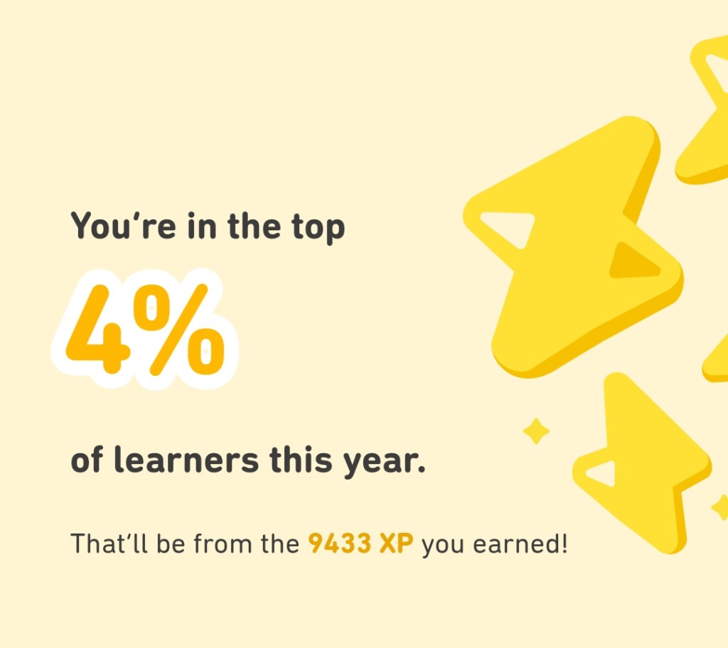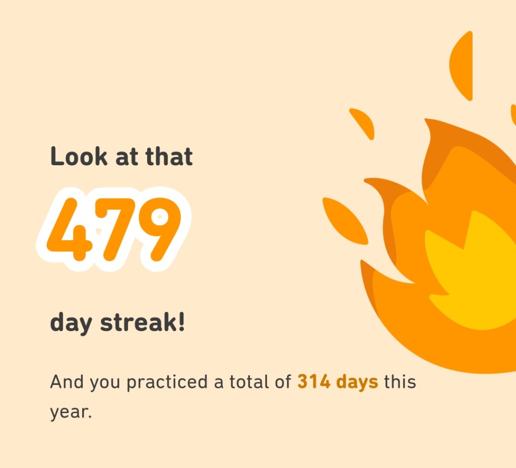 I only briefly dabbled in Chinese and Japanese on Duolingo, just to see what the content was like, but didn’t really do any regular learning for those languages last year.