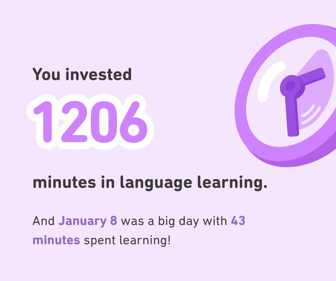 If you break it down, 1206 minutes divided by 334 days (calculating through November 30th) amounts to approximately 3.6 minutes a day, which really isn’t a lot. Daily language study doesn’t have to be time-consuming!