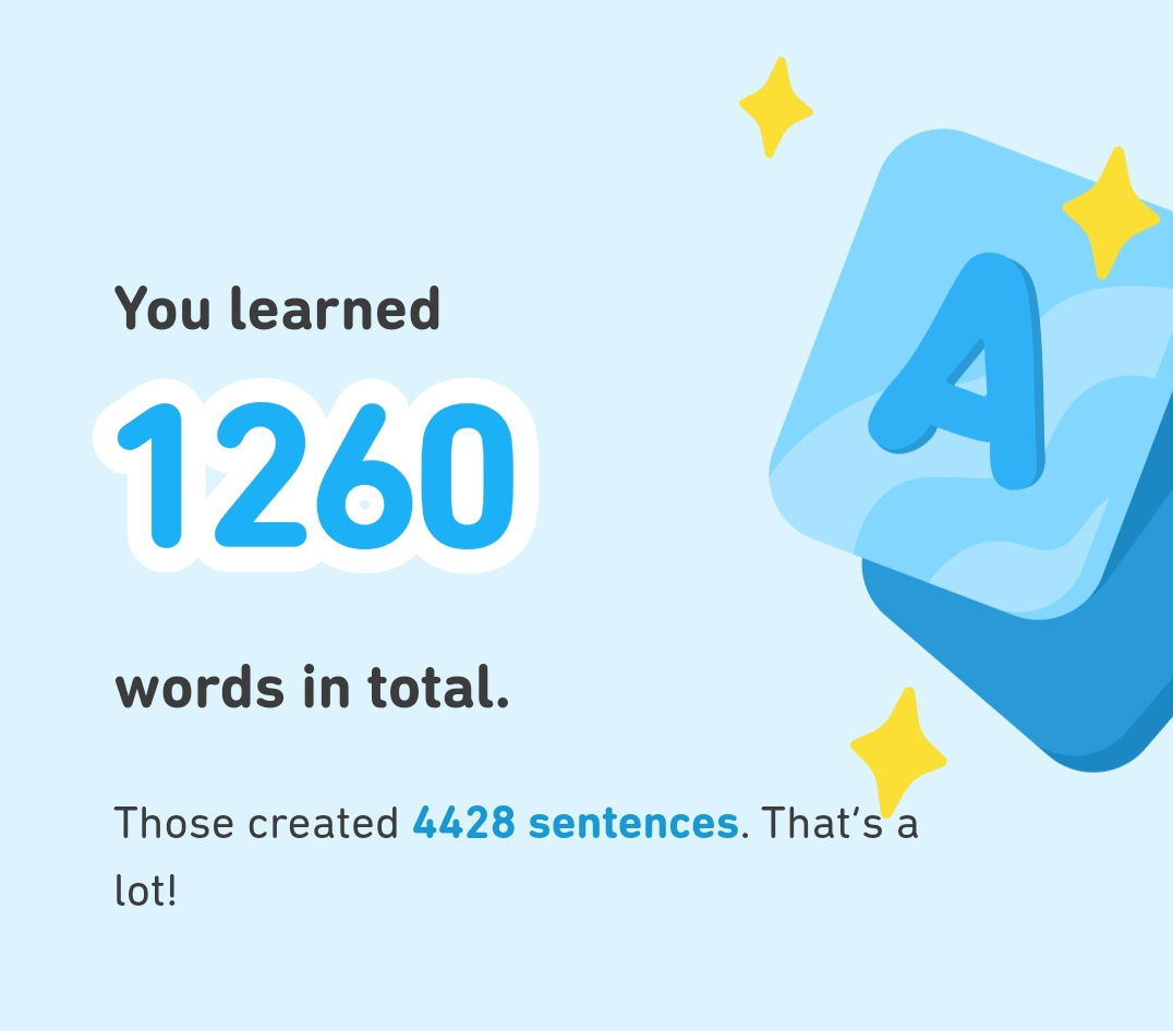 But yeah I wish people could just enjoy Duolingo for what it is rather than criticizing it for not being the “silver bullet” to fluency.