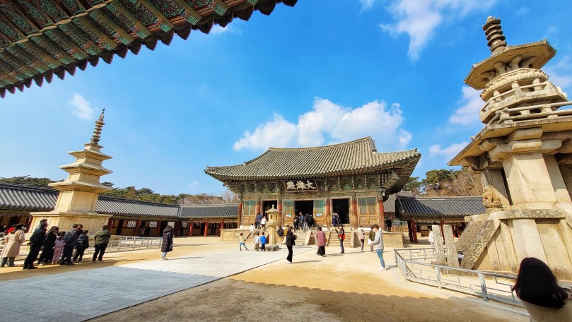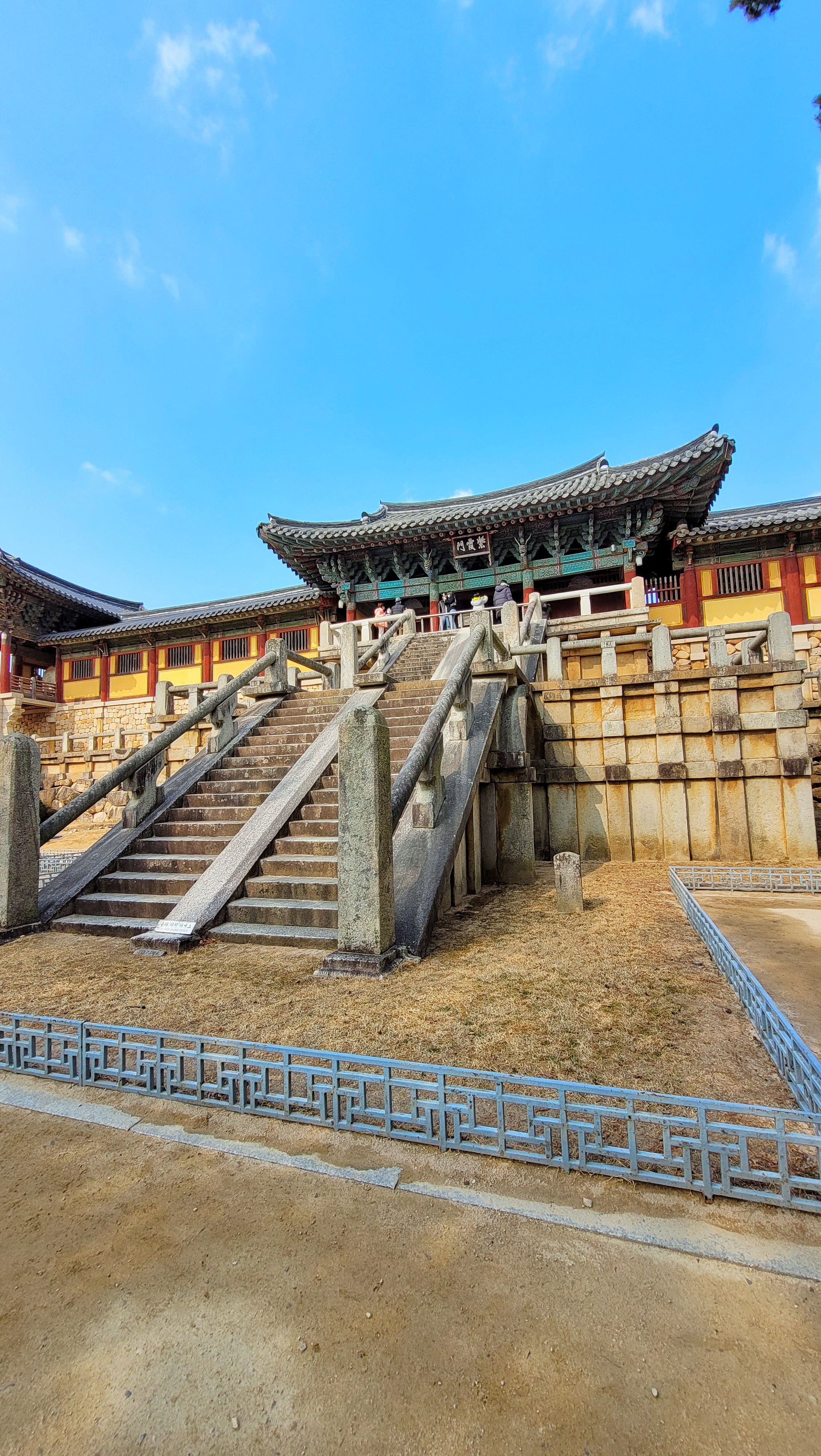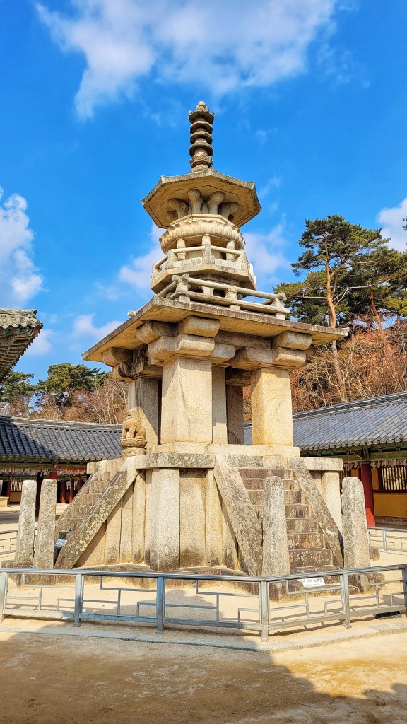 Bulguksa is a Buddhist temple that dates back to the 8th century AD. It is a UNESCO world heritage site and houses several Korean national treasures, including the stairs pictured below, two stone pagodas, and gilt-bronze Buddha statues. You can also see where some of Buddha’s bones and other religious relics are housed. It’s a beautiful structure with a lot of religious, cultural, and historical significance.