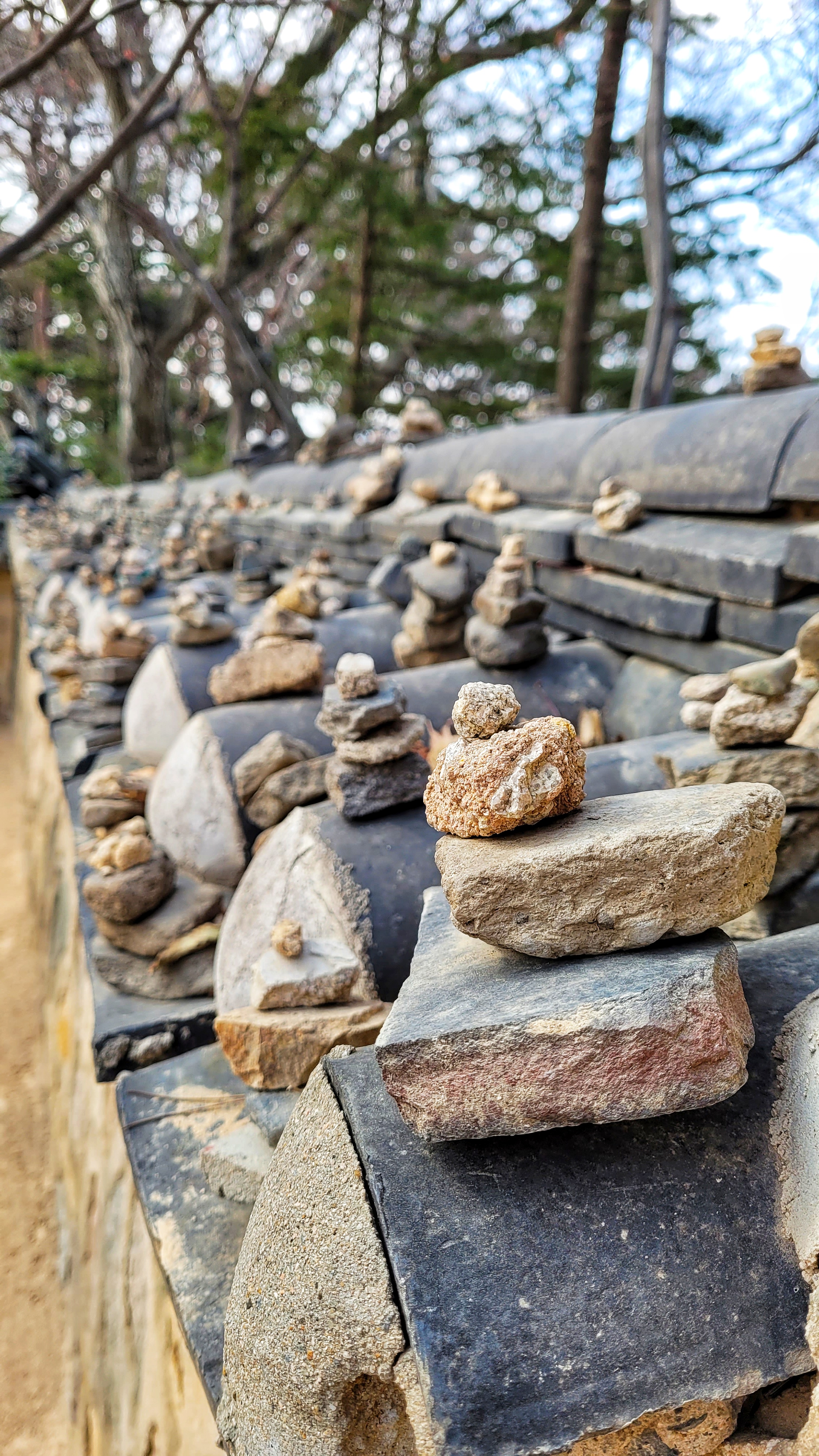 In another courtyard, you will find little stacks of rocks all over the surrounding walls and within the main area of the courtyard. These are wishing rocks! You can look around to find a suitable rock and then make a wish while stacking it on top of someone else’s rock. I wished for a healthy, happy baby!