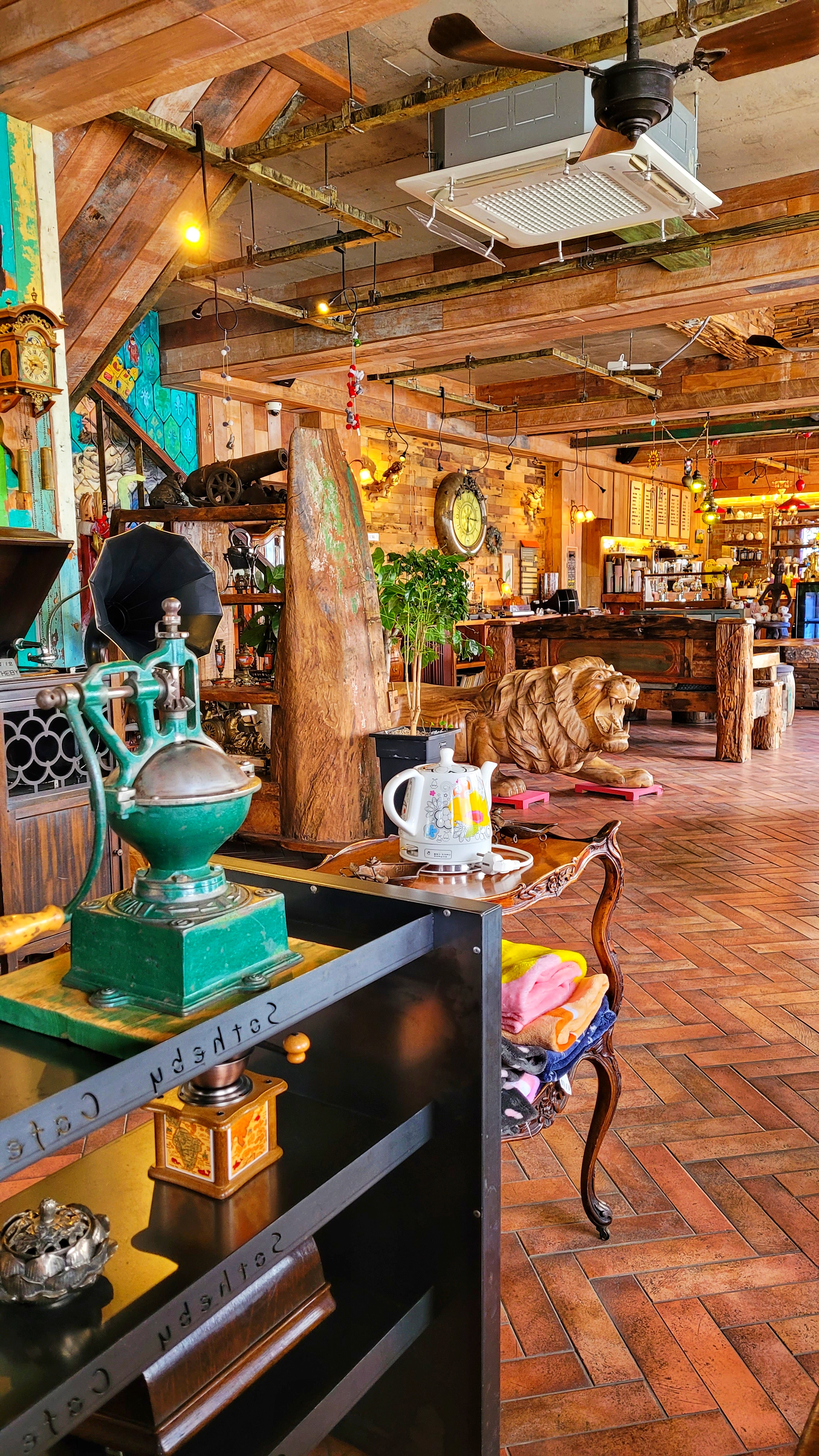 After spending a lot of time walking all around Bulguksa, we needed a pick-me-up. We found this cafe called Sotheby Coffee and they had a really unique interior design! Lots of antiques from around the world and a cozy atmosphere overall. We ordered two basil pesto ham and cheese sandwiches and a kiwi juice to share. Everything was delicious and totally hit the spot.