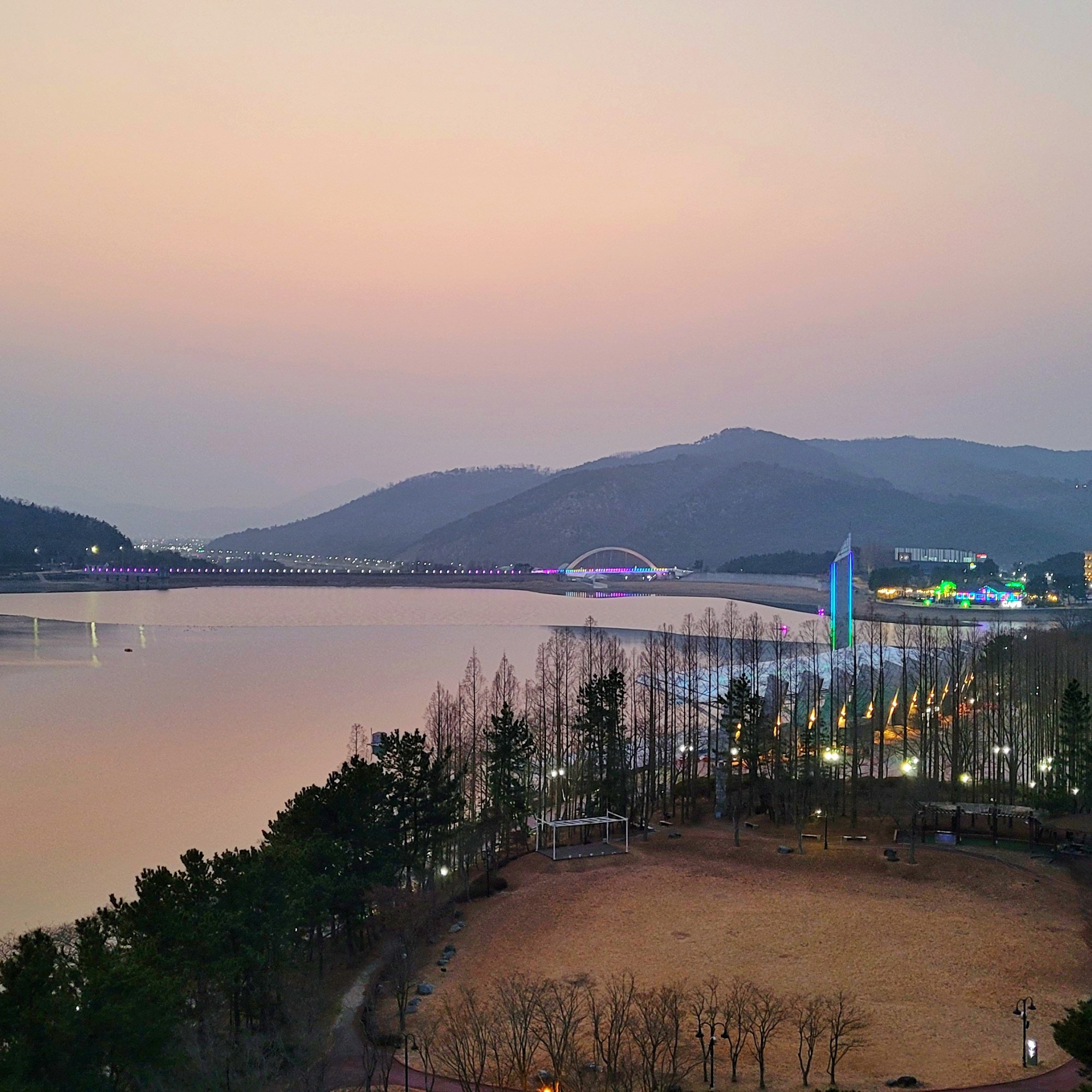By the time we finished eating it was finally time to check in to our hotel! We chose to stay at one of the newer resorts in Gyeongju, the Lahan Select, which was right on the water at Bomun Lake. They boast a five-star rating, but while we weren’t super impressed with the amenities, the view was absolutely worthy of five stars.
