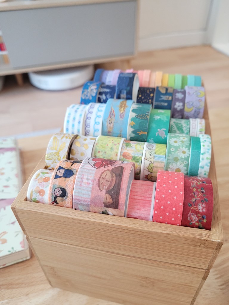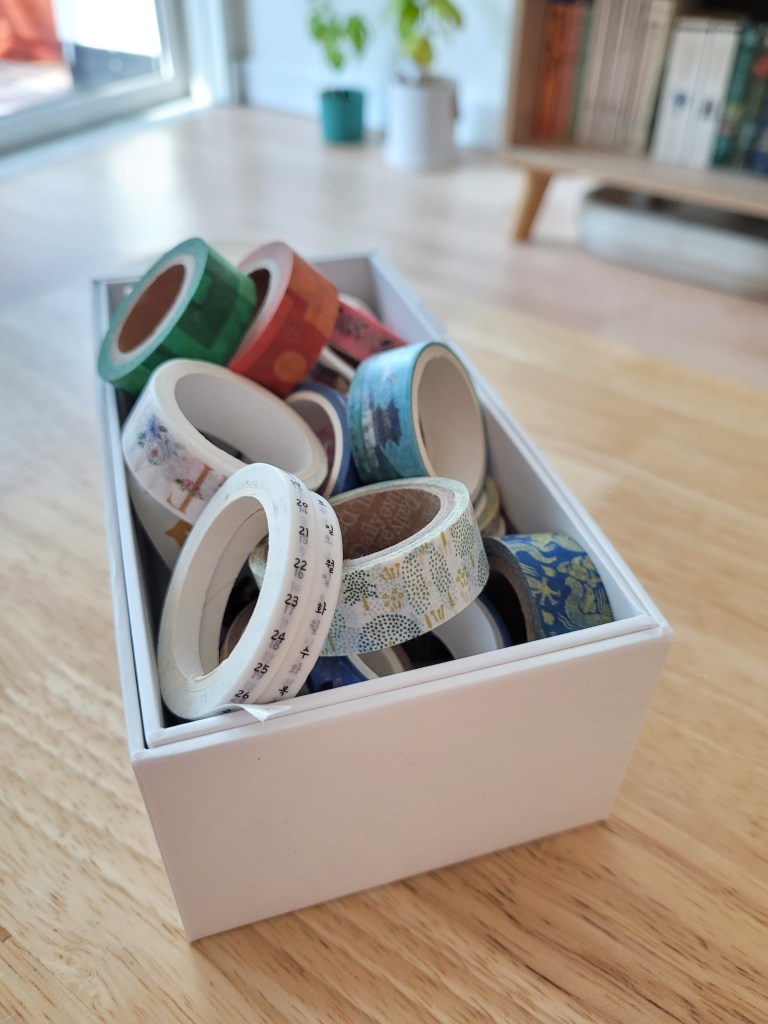 So far, I’ve been able to downsize my pen and highlighter collection, and yesterday I finished decluttering my washi tape stash! This was tough for me, as I absolutely love washi tape.